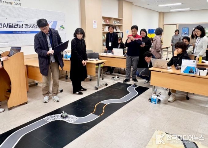 교육은 총 15명을 선발해 지난 3월 11일부터 운영 중이며, 현장 활용도를 높인 실무 중심으로 ▲AI 딥러닝 기초 이론 ▲자율주행 로봇 실습 ▲사물인터넷(IoT) 기반 앱 제작 ▲AI 딥러닝 교육 교수법 등으로 구성됐다.