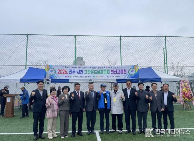 [ 한국미디어뉴스 김홍철 기자 ] 진주시와 사천시 그라운드골프 동호인들이 필드 위에서 상생과 화합의 물꼬를 텄다. ‘제1회 진주·사천시 그라운드골프협회 친선교류전’이 지난 1일 신안동 복합스포츠타운 축구장에서 개최됐다.
