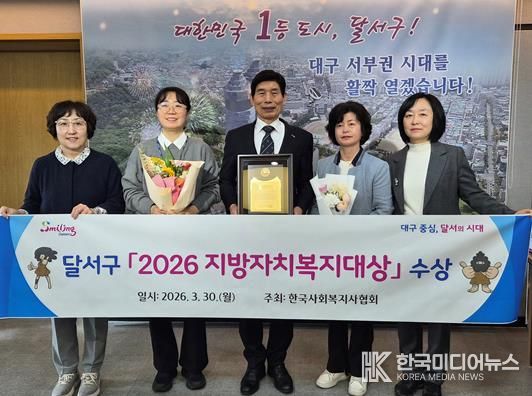 [ 한국미디어뉴스 이보영 기자 ] 대구 달서구가 한국사회복지사협회가 주관하는‘2026 지방자치복지대상’에서 기초자치단체 부문 대상을 수상하며 복지 선도도시로서의 위상을 다시 한번 입증했다.