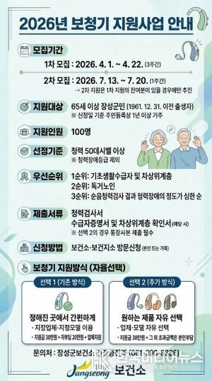 [ 한국미디어뉴스 이종철 기자 ] 장성군이 올해부터 어르신 보청기 지원사업에 ‘선택형 지원 방식’을 도입한다.