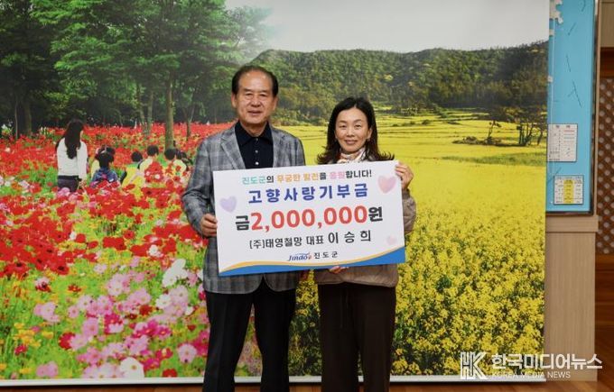 [ 한국미디어뉴스 이종철 기자 ] 진도군에 소재하는 ㈜태영철망의 이승희 대표는 지난 3월 30일 진도군청을 방문해, 지역 발전과 군민의 복리 증진을 위해 고향사랑기부금 200만 원을 기부 했다.