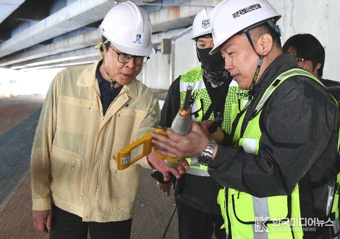 이번 정밀안전진단은 지난 3월 16일부터 오는 6월 3일까지 진행되며, 육안조사와 비파괴시험 등을 통해 교량의 구조적 안전성을 종합적으로 점검하고 있다. 특히 균열, 백태 등 외관 상태를 면밀히 조사하고, 고소작업차를 활용한 근접 외관 조사와 상부구조물 탄성시험 등을 통해 눈에 보이지 않는 미세 손상까지 확인하고 있다.