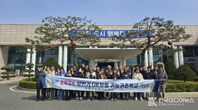 [ 한국미디어뉴스 이원영 기자 ] 보령시는 신규 귀농·귀촌인의 성공적인 농업·농촌 정착을 위해 ‘2026년 상반기 OK보령 귀농·귀촌학교’를 4월 3일부터 5월 29일까지 총 7회, 41시간 과정으로 운영한다고 밝혔다.