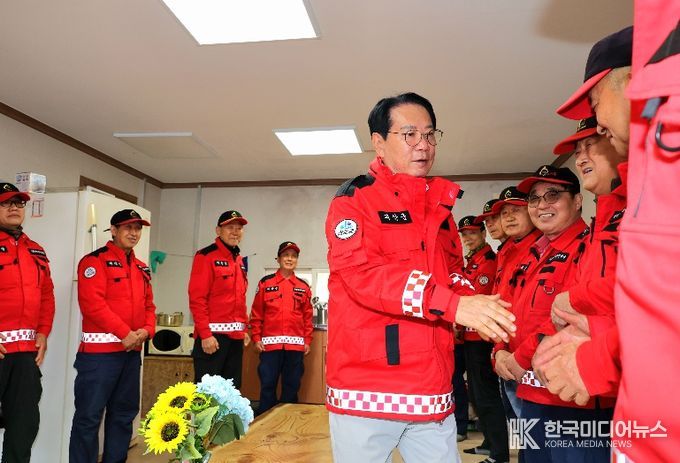 송 군수는 산림재난대응단의 근무 실태를 살피고 현장 요원들의 노고를 격려했다.