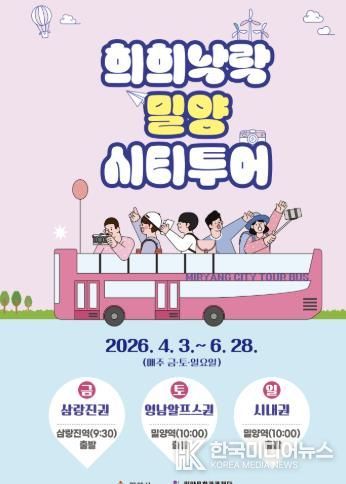 [ 한국미디어뉴스 최정화 기자 ] 밀양문화관광재단은 오는 6월 28일까지 2026년 상반기 ‘희희낙락 밀양 시티투어’를 본격 운영한다.