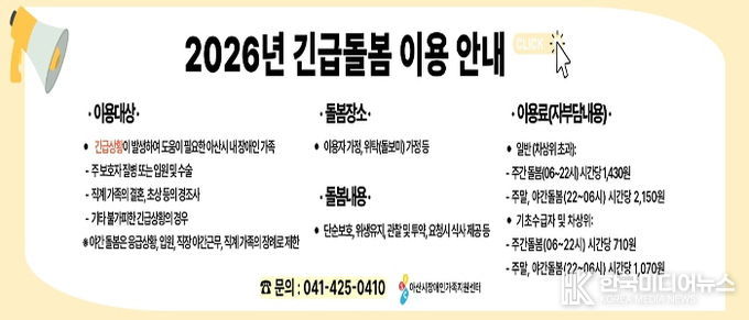 [ 한국미디어뉴스 이원영 기자 ] 아산시는 장애인 가족의 돌봄 부담을 경감하고 삶의 질을 향상하기 위해 ‘중증장애인 긴급돌봄서비스’를 추진한다.