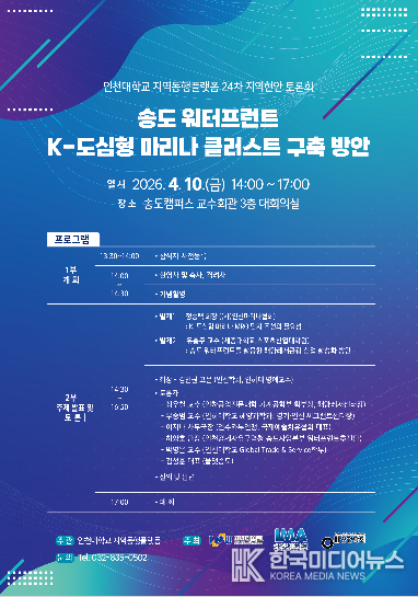 [ 한국미디어뉴스 이원영 기자 ] 인천대학교(총장 이인재)는 지역동행플랫폼(단장 홍진배 교수)이 4월 10일(금) 오후 2시 본교 교수회관 3층에서 제24차 지역동행플랫폼 지역현안 토론회를 개최한다고 밝혔다.