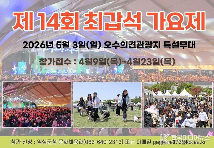 [ 한국미디어뉴스 이종철 기자 ] 임실군이 낳은 낭만 가객, 故 최갑석 선생의 음악적 업적을 기리기 위해‘제14회 최갑석 가요제’가 오는 5월 3일 오수의견관광지 특설무대에서 화려하게 펼쳐진다.