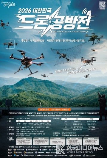 [ 한국미디어뉴스 김서안 기자 ] 포천시는 국방 무인체계(드론) 발전과 관련 산업계의 시너지 효과를 높이기 위해 국내 최초로 ‘2026 대한민국 드론 공방전(2026 KDCC)’을 오는 9월 개최한다.