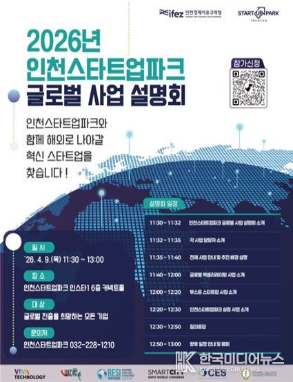 [ 한국미디어뉴스 이원영 기자 ] 인천경제자유구역청(IFEZ)과 인천테크노파크(ITP)는 4월 9일 인천스타트업파크에서 ‘2026 인천스타트업파크 글로벌 사업 설명회’를 성황리 개최했다고 밝혔다.