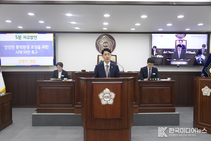 [ 한국미디어뉴스 이원영 기자 ] 동두천시의회 권영기 의원(국민의힘, 나 선거구)은 지난 10일 제345회 동두천시의회 임시회 개회식 5분 자유발언을 통해, 안전한 통학환경 조성을 위한 시책 마련을 촉구했다.