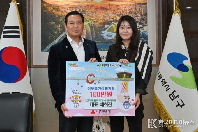 [ 한국미디어뉴스 이보영 기자 ] 대구 남구는 카페룰리오가닉 명덕역점 채희진 대표가 지난 10일 남구의 저소득 가구를 위해 성금 100만원을 기부했다고 밝혔다.