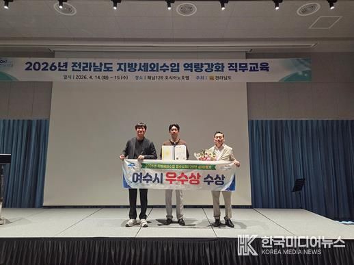 [ 한국미디어뉴스 이종철 기자 ] 여수시가 전라남도 주관 ‘2026년 지방세외수입 징수실적(2025년 실적) 평가’에서 우수상을 수상하며 안정적인 재정 운영 역량을 인정받았다.