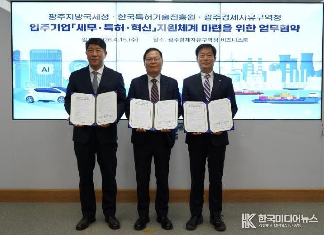 이날 협약식에는 선석기 광주경자청장, 김학선 광주지방국세청장, 김명섭 한국특허기술진흥원장이 참석해 지역 기업의 혁신 성장을 위한 협력체계 구축에 뜻을 모았다.