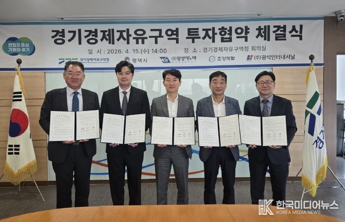 [ 한국미디어뉴스 김일규 기자 ] 경기경제자유구역청은 15일 경기경제청 8층 회의실에서 평택시 및 자동차부품, 반도체, 화학 제조기업 5개사(㈜왕성이노텍, 조양메탈㈜, ㈜광석인터내셔날/그 외 2개 기업 서면 협약)와 평택 포승(BIX)지구 산업시설용지 투자협약을 체결했다.
