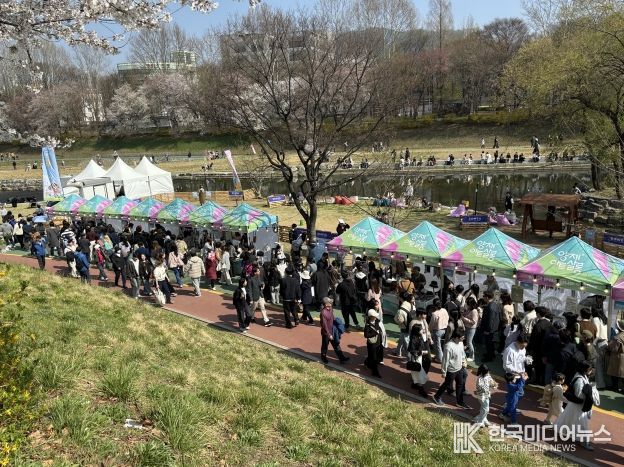 [ 한국미디어뉴스 이보영 기자 ] 봄기운이 절정을 이룬 4월의 주말, 양재천 일대는 약 10만 명의 나들이객으로 붐비며 그야말로 ‘문전성시’를 이뤘다. 산책로를 따라 펼쳐진 아트마켓에는 아기자기한 수공예품이 시선을 사로잡고, 공연과 체험 프로그램이 더해지며 도심 속 특별한 문화·소비 공간인 양재천길 상권에도 활기가 넘쳤다.