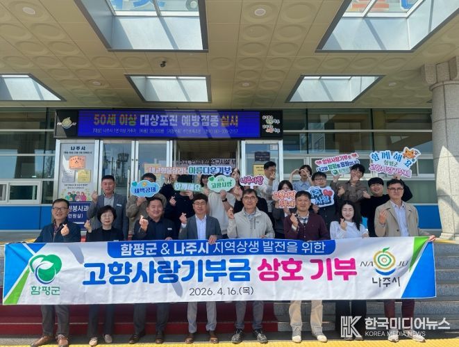 [ 한국미디어뉴스 이종철 기자 ] 전남 함평군과 나주시가 고향사랑기부금 상호 기부를 통해 지역 간 상생협력 강화에 나섰다.