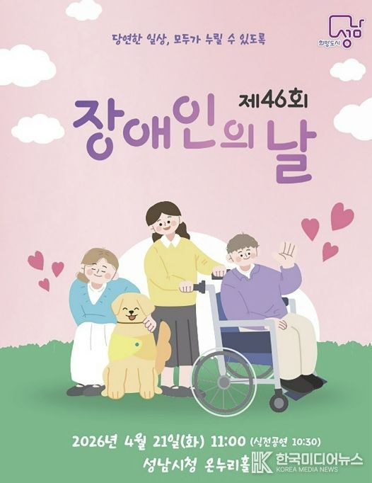 [ 한국미디어뉴스 이원영 기자 ] 성남시는 ‘제46회 장애인의 날(4.20)’을 맞아 오는 4월 21일 오전 11시 시청 1층 온누리에서 기념식을 연다.