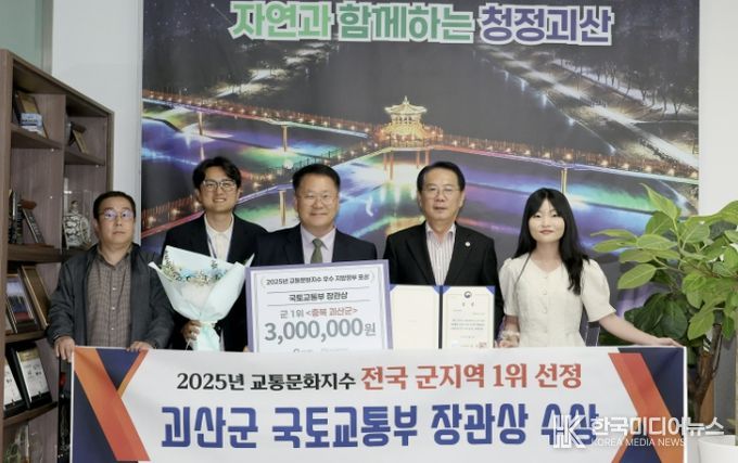 [ 한국미디어뉴스 김풍옥 기자 ] 충북 괴산군은 한국교통안전공단 상주교통안전체험교육센터에서 열린 교통문화지수 우수‧개선 지방정부 시상식에서 국토교통부 장관상을 수상했다고 17일 밝혔다.