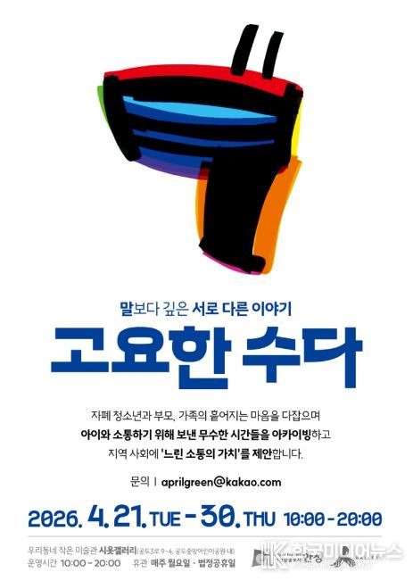 [ 한국미디어뉴스 이보영 기자 ] 안성시 시옷갤러리는 오는 4월 21일부터 4월 30일까지 자폐 청소년과 그 가족이 함께 참여하는 전시 《고요한 수다》를 개최한다고 밝혔다.