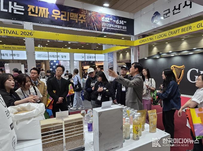 [ 한국미디어뉴스 이원영 기자 ] 군산시는 4월 16일부터 18일까지 서울 COEX에서 열린 ‘2026 대한민국 맥주박람회’에 참가해 군산맥아와 ‘군산 수제맥주&블루스 페스티벌’을 중심으로 수제맥주 도시브랜드를 홍보했다.