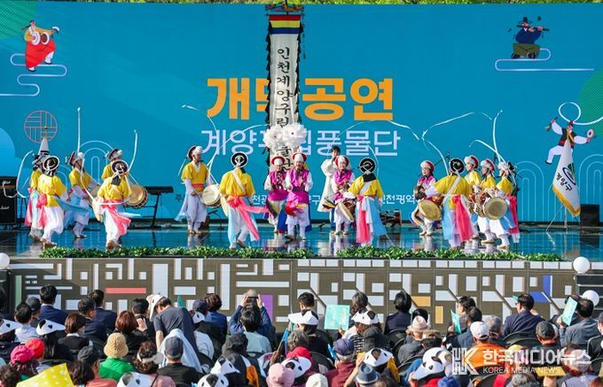 오후 5시부터 열린 본마당 기념식은 계양구립풍물단의 개막 공연으로 시작됐다. 국민의례에서는 국악인이자 가수로 활동 중인 윤예원 씨가 애국가를 선창하며 기념식의 품격을 높였다.