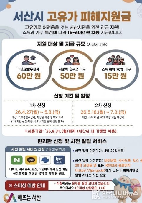 시 관계자는 “고유가 피해 지원금의 신청부터 지급까지 불편이 없도록 안내와 홍보, 현장 대응에 최선을 다하겠다”라고 말했다.