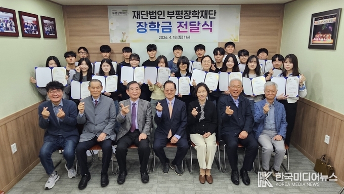 재단법인 부평장학재단(이사장 조진형)이 지난 18일 재단 사무국에서 ‘2026년도 장학증서 전달식’을 개최하여, 이사회 심의를 통해 장학생으로 선발된 대학생 27명에게 개인별 장학금 500만원씩 총 1억3,500만원을 전달했다고 밝혔다.