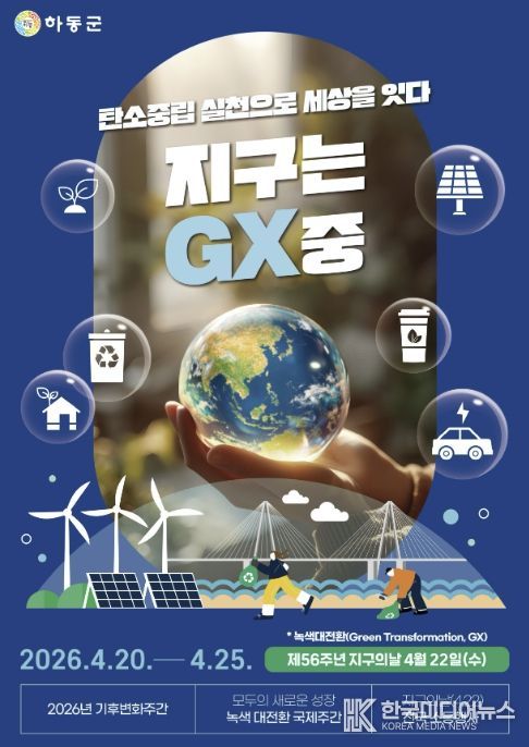 [ 한국미디어뉴스 김홍철 기자 ] 하동군은 제56주년 지구의 날을 맞아 4월 20일부터 24일까지 ‘제18회 기후변화주간’을 운영한다고 밝혔다.
