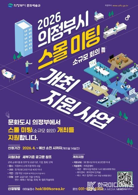 [ 한국미디어뉴스 기자 ] 의정부시는 관외에 소재지를 둔 기관 및 단체 등을 대상으로 ‘2026 의정부시 스몰미팅(소규모 회의) 개최 지원사업’을 추진한다.