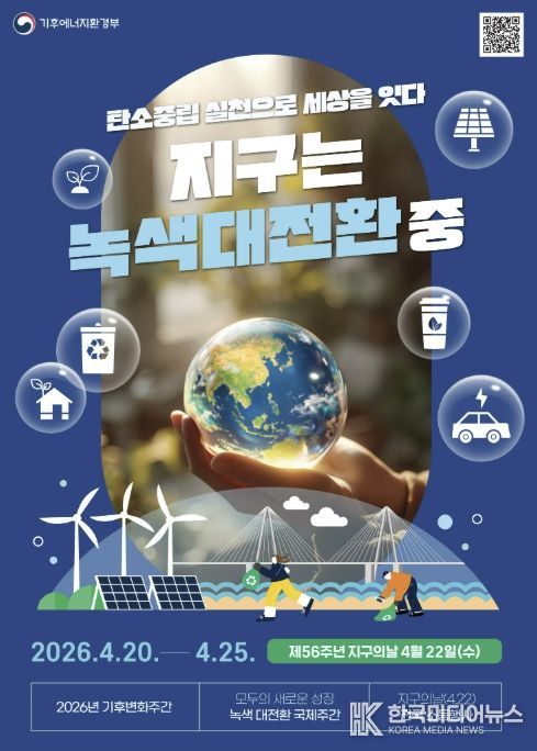 [ 한국미디어뉴스 이원영 기자 ] 화성특례시는 제56주년 지구의 날(4월 22일)을 맞아 4월 20일부터 24일까지 ‘기후변화주간’을 운영하고, 시민 참여형 탄소중립 실천 캠페인을 추진한다.