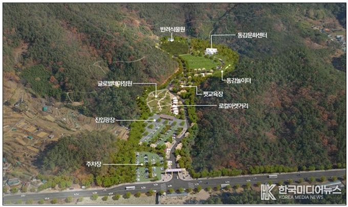 기장군 철마면 구칠리 내 24만 1천 제곱미터(㎡)에 시비 433억 원을 투입해 국내 최대 규모로 조성되며, ▲동감문화센터 ▲동감둘레길 ▲글로벌테마정원 ▲동감놀이터 ▲펫교육장 ▲반려식물원 ▲로컬마켓거리 등 반려문화 관련 다양한 시설 들어설 예정이다.