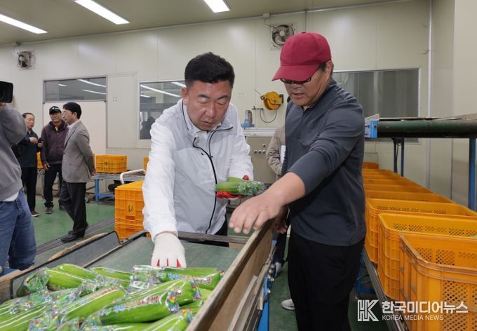 [ 한국미디어뉴스 김풍옥 기자 ] 이범석 청주시장은 20일 흥덕구 오송읍에 위치한 청원생명 애호박 공동선별장을 방문해 공선 및 유통 현황을 점검하고 관계자와 지역 농민들을 격려했다.