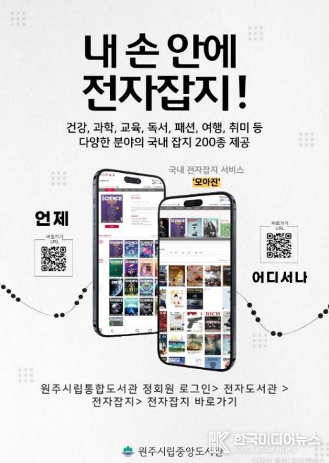 [ 한국미디어뉴스 이원영 기자 ] 원주시립중앙도서관은 디지털 시대에 발맞춰 국내 전자잡지 구독 서비스 ‘모아진’을 운영하고 있다.
