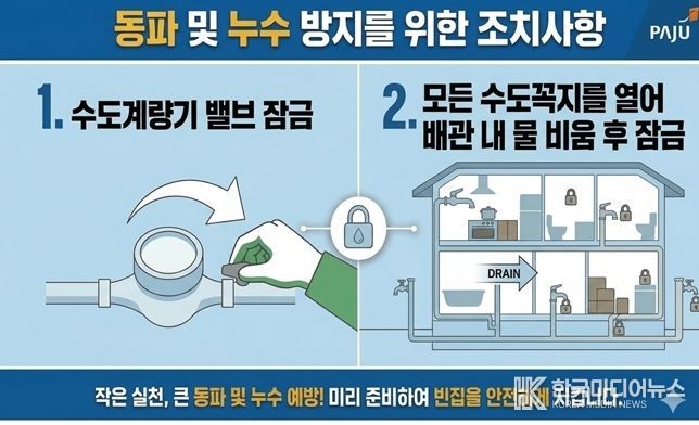 [ 한국미디어뉴스 기자 ] 파주시가 겨울철 한파와 여름철 집중호우로 반복되는 빈집(3개월 이상 수도 사용량이 없는 수용가) 수도 누수 문제 해결에 본격적으로 나선다.