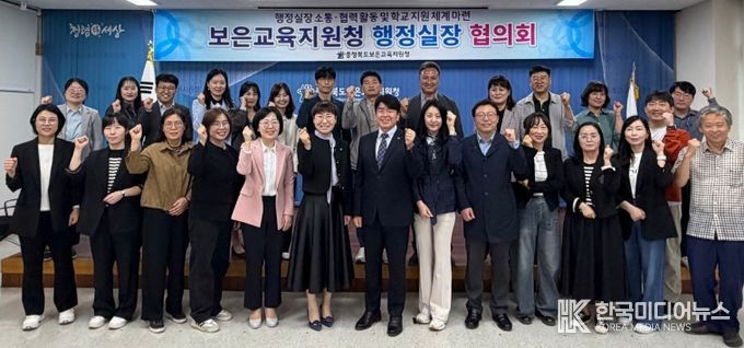 [ 한국미디어뉴스 김풍옥 기자 ] 충청북도보은교육지원청은 대회의실에서 교육장, 행정과장, 관내 초‧중‧고 행정실장 등 20여 명이 참석한 가운데 ‘2026년 상반기 행정실장 협의회’를 개최했다고 21일 밝혔다.