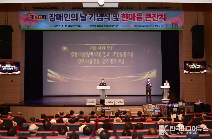 [ 한국미디어뉴스 이원영 기자 ] 청송군은 (사)경북지체장애인협회 청송군지회 주관으로 4월 21일 청송문화예술회관 대공연장에서 ‘제46회 장애인의 날 기념식 및 한마음 큰잔치’를 성황리에 개최했다고 밝혔다.