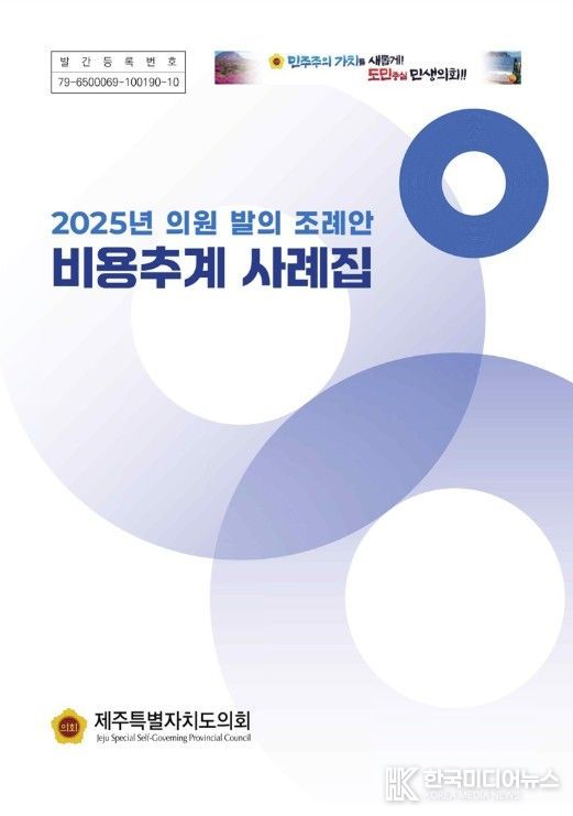 [ 한국미디어뉴스 이원영 기자 ] 제주특별자치도의회는 지방재정의 건전성을 도모하고 도민의 알 권리를 증진하기 위해 '2025년 비용추계 사례집'을 발간하고, 이를 누리집에 공개했다고 21일 밝혔다.