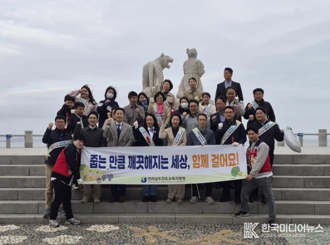 [ 한국미디어뉴스 이종철 기자 ] 전라남도진도교육지원청은 4월 20일 진도 신비의 바닷길 축제장 일원에서 교직원의 환경 실천 역량을 높이고 지속가능한 생태환경 조성을 위한 ‘공생의 길 도보 탐사(플로깅)’ 활동을 운영했다.