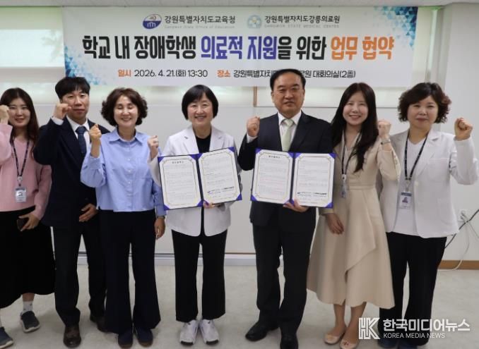 [ 한국미디어뉴스 이원영 기자 ] 강원특별자치도교육청은 4월 21일 13시 30분, 강원특별자치도강릉의료원과 강릉·동해 지역 특수학교 중도장애학생의 학교 내 의료적 지원 강화를 위한 업무협약(MOU)을 체결한다.