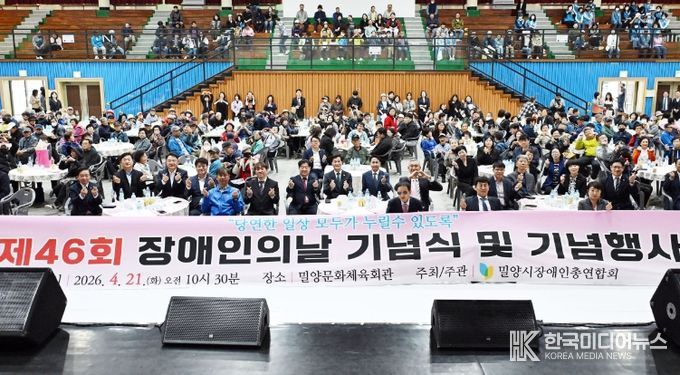 [ 한국미디어뉴스 최정화 기자 ] 경남 밀양시는 21일 밀양문화체육회관에서 밀양시장애인총연합회(회장 김수현) 주관으로 ‘제46회 장애인의 날’ 기념행사를 개최했다.