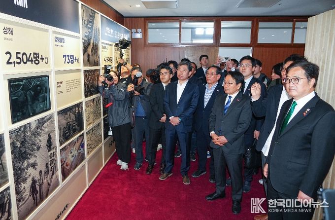 우원식 의장과 강기정 시장은 도청 본관 → 도경찰국 본관 → 상무관 순으로 50분가량 관람했다. 특히 경찰국 주제영상실과 상무관에서 항쟁 과정 및 희생자 시신 수습 과정을 주제로 한 영상을 시청하며 민주주의를 위해 희생한 이들을 기억했다. 또 도청 외벽, 도청 앞 은행나무 등에 새겨진 탄두 흔적 등을 주의 깊게 살펴봤다.