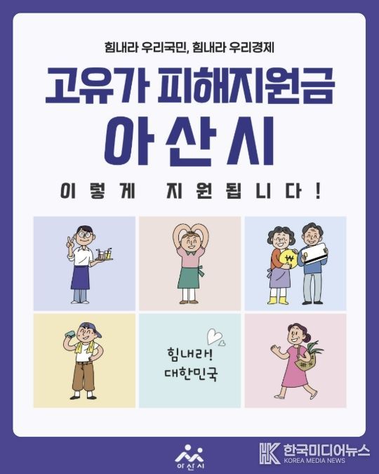 [ 한국미디어뉴스 이원영 기자 ] 아산시가 고유가·고환율·고물가로 인한 시민들의 생활 부담을 완화하고 지역경제에 활력을 불어넣기 위해 오는 4월 27일부터 ‘고유가 피해지원금’ 1차 신청 접수와 지급을 시작한다.