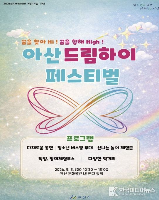 한편, 올해 '아산 드림하이 페스티벌'은 오는 5월 5일 어린이날 오전 10시 30분부터 오후 3시까지 아산문화공원 잔디광장 일원에서 열린다. 신정호수공원에서 이어져 온 어린이날 기념행사가 올해 처음으로 도심으로 개최 장소를 옮기게 됐으며, 아산시청 인근의 접근성 좋은 공간에서 진행되는 만큼 더욱 많은 시민이 편리하게 참여할 수 있을 것으로 기대된다.