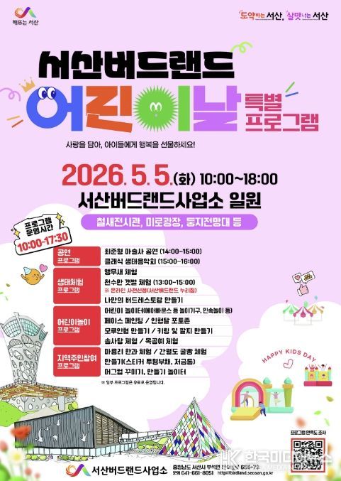 [ 한국미디어뉴스 이원영 기자 ] 충남 서산시는 오는 5월 5일 ‘서산버드랜드 어린이날 특별프로그램’을 운영한다고 밝혔다.