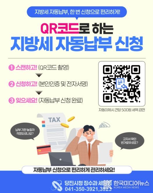 [ 한국미디어뉴스 이원영 기자 ] 당진시가 전국 지방자치단체 최초로 스마트폰을 활용한 ‘QR 자동납부 신청 시스템’을 본격 도입하며 디지털 세무 행정의 문턱을 대폭 낮췄다.