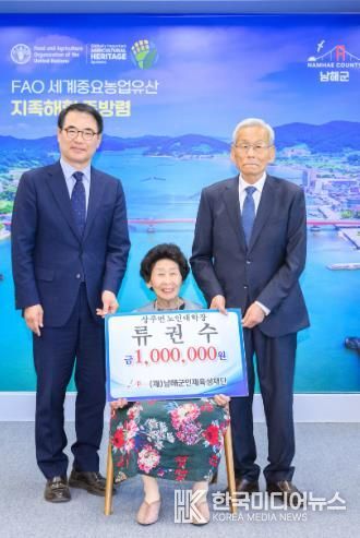 [ 한국미디어뉴스 김홍철 기자 ] (재)남해군인재육성재단은 올해 구순을 맞은 류권수 상주면 노인대학장이 100만 원의 인재육성기금을 기탁했다고 밝혔다.