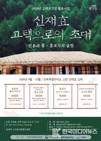 [ 한국미디어뉴스 이종철 기자 ] 고창군이 (사)동리문화사업회와 국가유산청 고택·종갓집 활용사업으로 ‘신재효 고택으로의 초대’를 고창 신재효 고택과 판소리공원 일대에서 오는 25일부터 10월까지 본격 운영한다고 밝혔다.