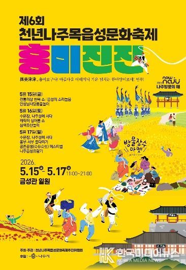 [ 한국미디어뉴스 이종철 기자 ] 전남 나주시가 ‘2026 나주방문의 해’를 맞아 전통과 체험, 가족형 콘텐츠를 결합한 ‘제6회 천년나주목읍성문화축제’를 5월 15일부터 17일까지 금성관 일원에서 개최하며 대표 역사 문화축제로서의 위상을 강화한다.