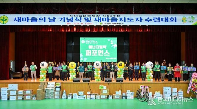 [ 한국미디어뉴스 이보영 기자 ] 영주시새마을회는 지난 22일 영주국민체육센터에서 ‘제56주년 새마을의 날 기념식 및 새마을지도자 수련대회’를 개최했다.